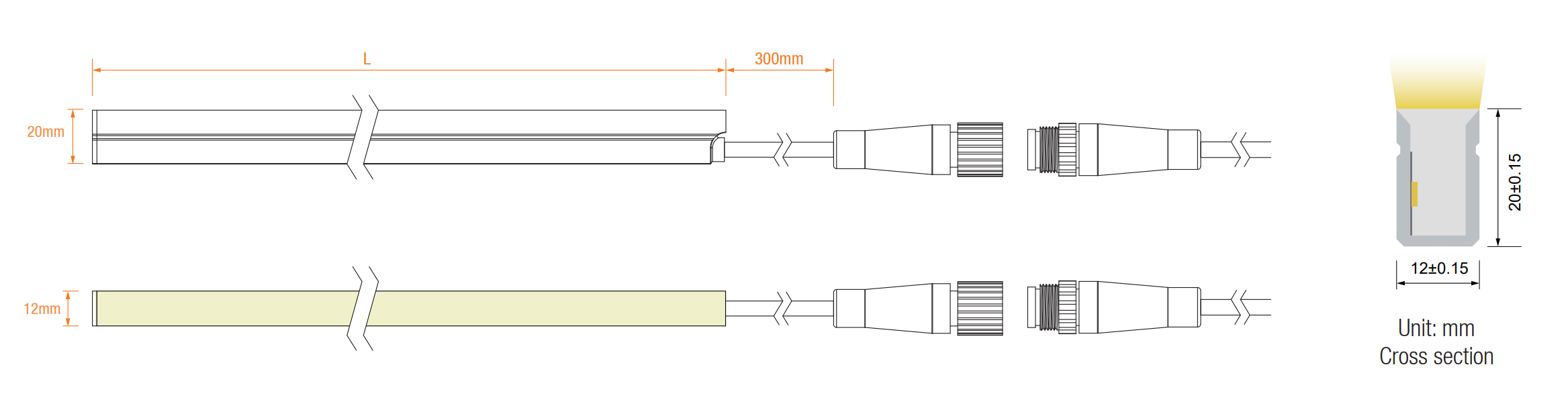 | MGS-PUSV1220V24W15-2500K | 2350-2650K | >90 | DC24V CC | 15W | 600lm | 41.67mm | 12m single power input |